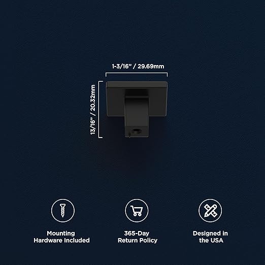 - Effortless Kitchen Cabinet Handles: These 1-3/16 inch square drawer knobs have a diameter of 1-3/16 inches with a 7/16 inch base and 13/16 inch projection; Our cabinet pulls include all the mounting hardware needed to install these drawer pulls quickly