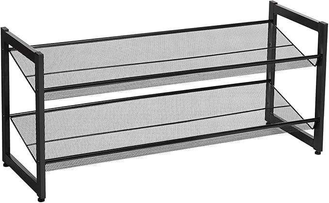 - [High-Quality Materials & Long Lifespan] The sturdy shoe rack is made of thickened metal frame and dense metal mesh shelves, this shoe organizer can hold up to 40 lb per shelf, ensuring your shoes have enough high stability for easy organization and storage. SONGMICS closet shoe rack maintains the nice and versatile while enhancing the service life, this durable storage shelf will slide perfectly into any abode